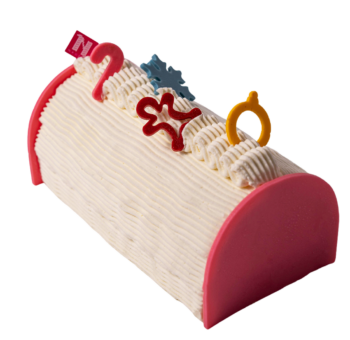 Indulge in fresh vanilla panna cotta, a light mousse made with clear maple syrup and decorated with classic macaron biscuits. Our signature cake!